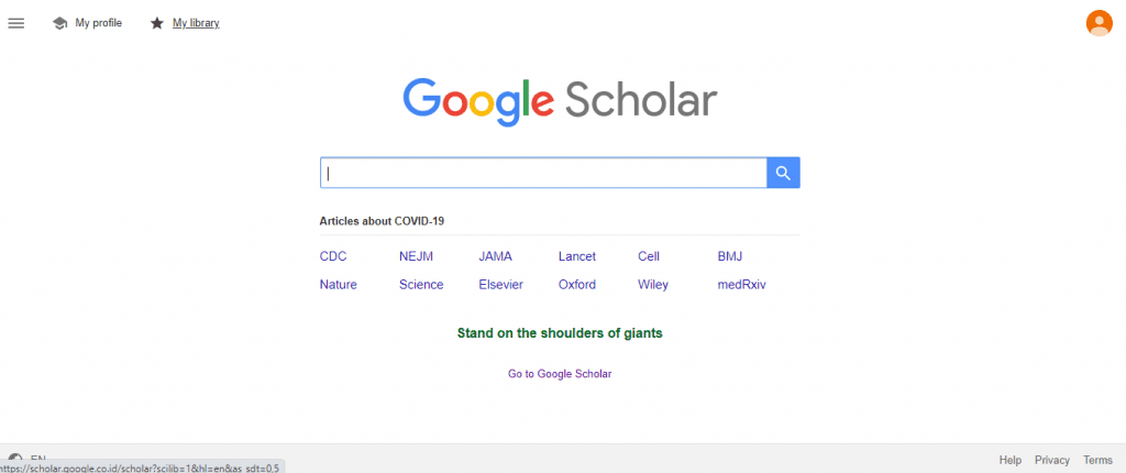 Ini dia situs paling umum tapi sering diremehkan! Google Scholar adalah gudangnya referensi ilmiah mulai dari jurnal nasional, internasional, tesis, disertasi, hingga kutipan buku elektronik.
