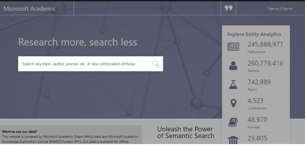 Microsoft Academic dulunya adalah salah satu mesin pencari akademik terlengkap dengan tampilan user-friendly dan data yang up-to-date.