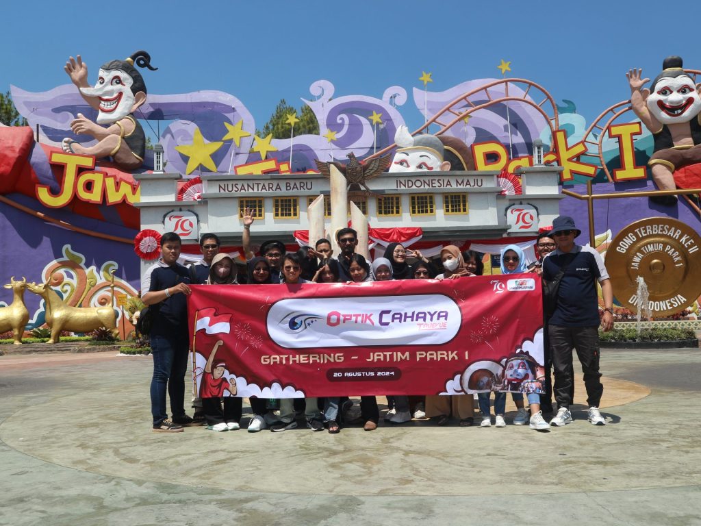 Family Gathering Team Optik Cahaya Truevue di Jatim Park 1 menjadi salah satu momen spesial untuk merayakan HUT RI ke-79 sambil mempererat hubungan antaranggota tim.