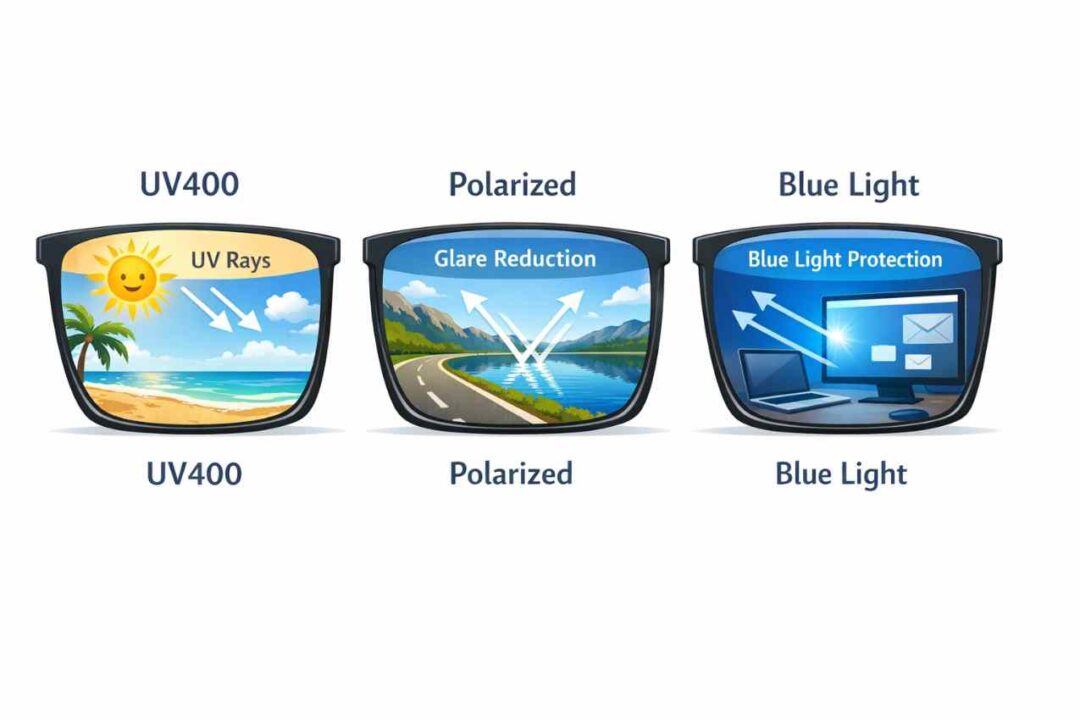 Banyak kacamata murah mencantumkan “UV” tapi tidak jelas kualitasnya. - Sesuaikan dengan aktivitas