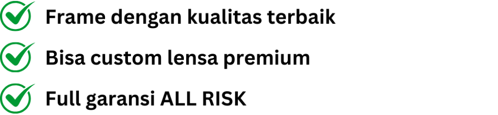 Garansi All Risk Frame & Lensa selama 12 bulan setelah tanggal transaksi