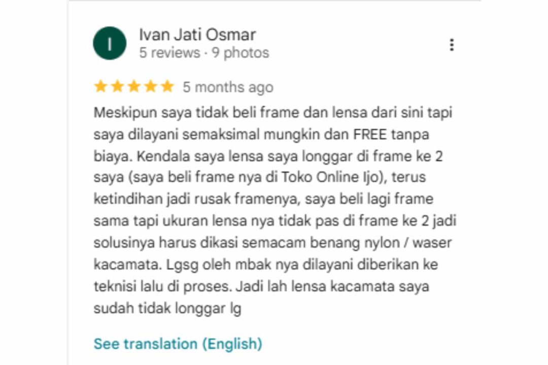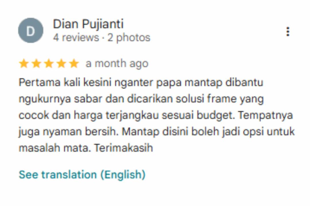 Kalau kamu pernah datang dan puas, jangan lupa kasih review juga! Semakin banyak orang tahu pengalamanmu, makin banyak juga warga Surabaya Barat yang terbantu menemukan optik yang tepat.