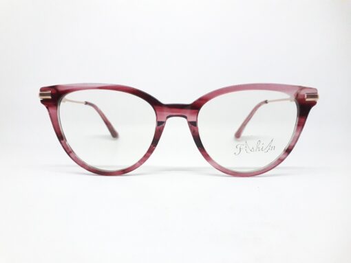 Keterangan: Frame plastik transparan warna marun motif kayu. Gagang metal warna gold. Ujung gagang plastik transparan warna marun motif kayu.