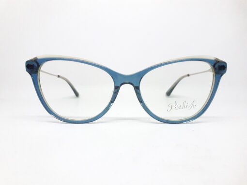 Keterangan: Frame plastik transparan bagian luar warna biru, bagian dalam warna hijau cincau. Gagang metal warna platinum. Ujung gagang plastik transparan warna biru.