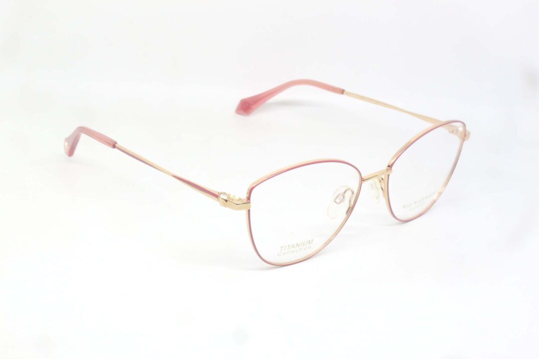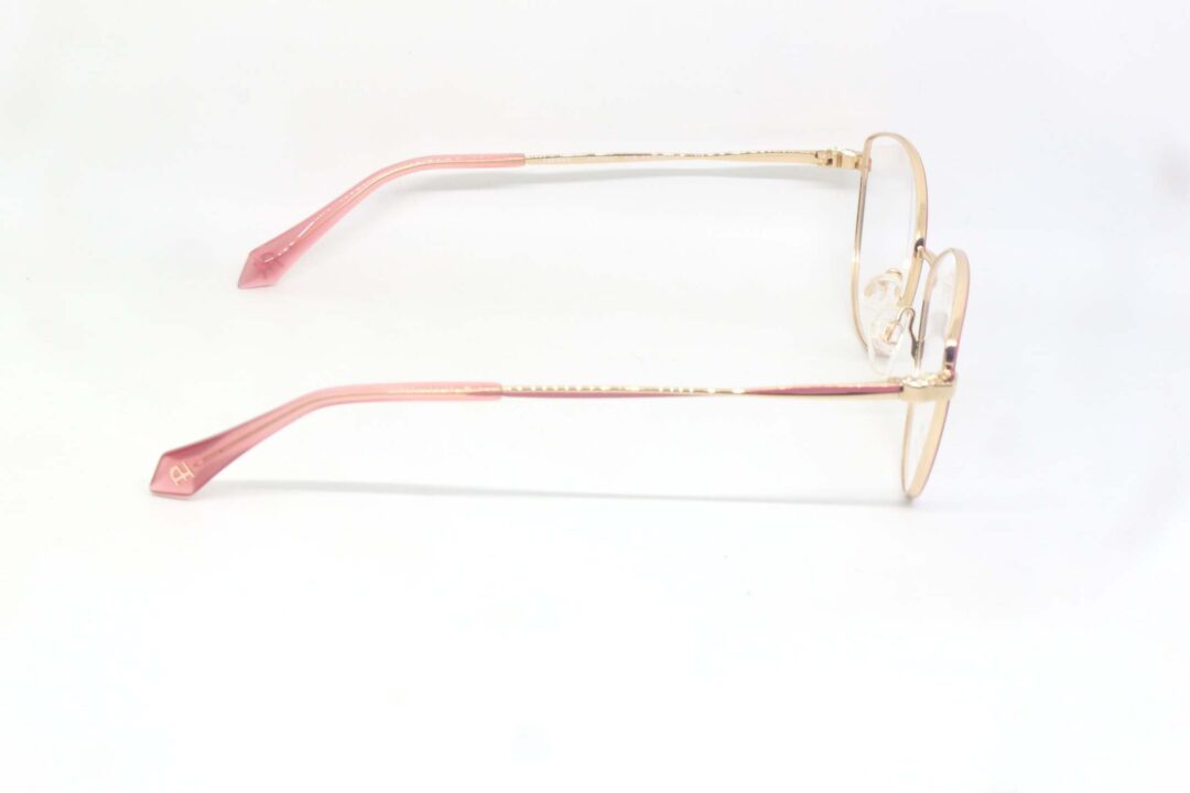 Frame ini mengusung kombinasi warna yang unik dan premium, yaitu frame metal warna gold dengan aksen bingkai pink tua.