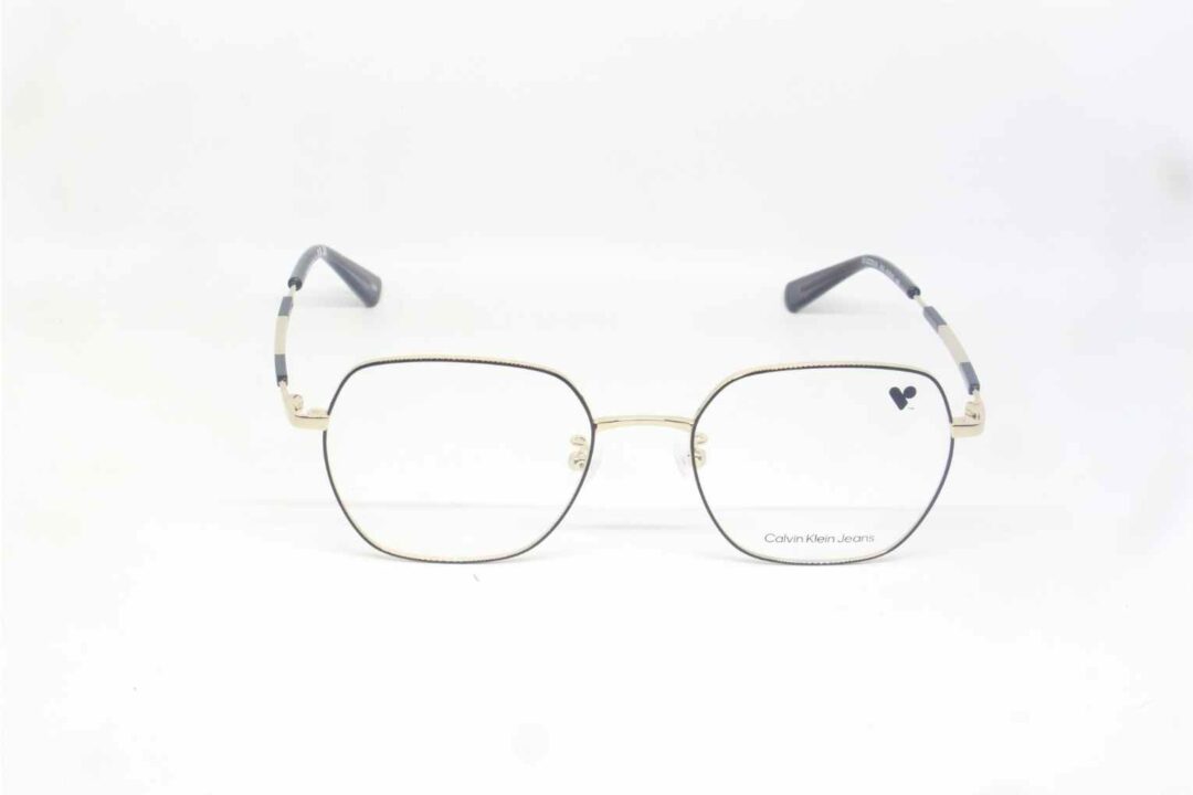 Frame Kacamata Branded Calvin Kleins Jeans CKJ22231LB 719 bahan titanium dengan warna hitam dan gold.
