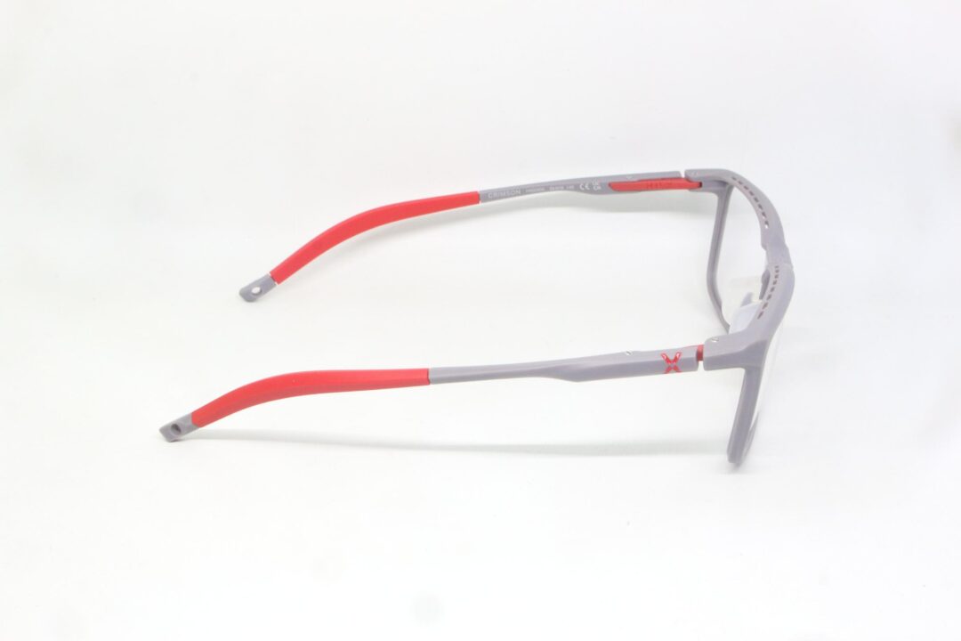 Mengusung frame plastik warna grey dengan gagang plastik grey dan ujung merah, kacamata ini tampil elegan sekaligus sporty. Material plastik ringan dan fleksibel memberikan kenyamanan maksimal, cocok untuk dipakai lama tanpa membuat kepala terasa berat.