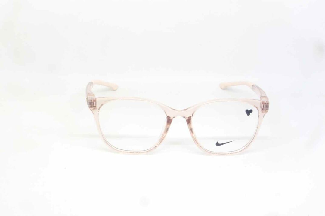 Frame Kacamata Branded Nike Optical NK7157LB 682 warna pink transparan, desain bulat full frame bahan plastik yang ringan dan nyaman untuk wanita.