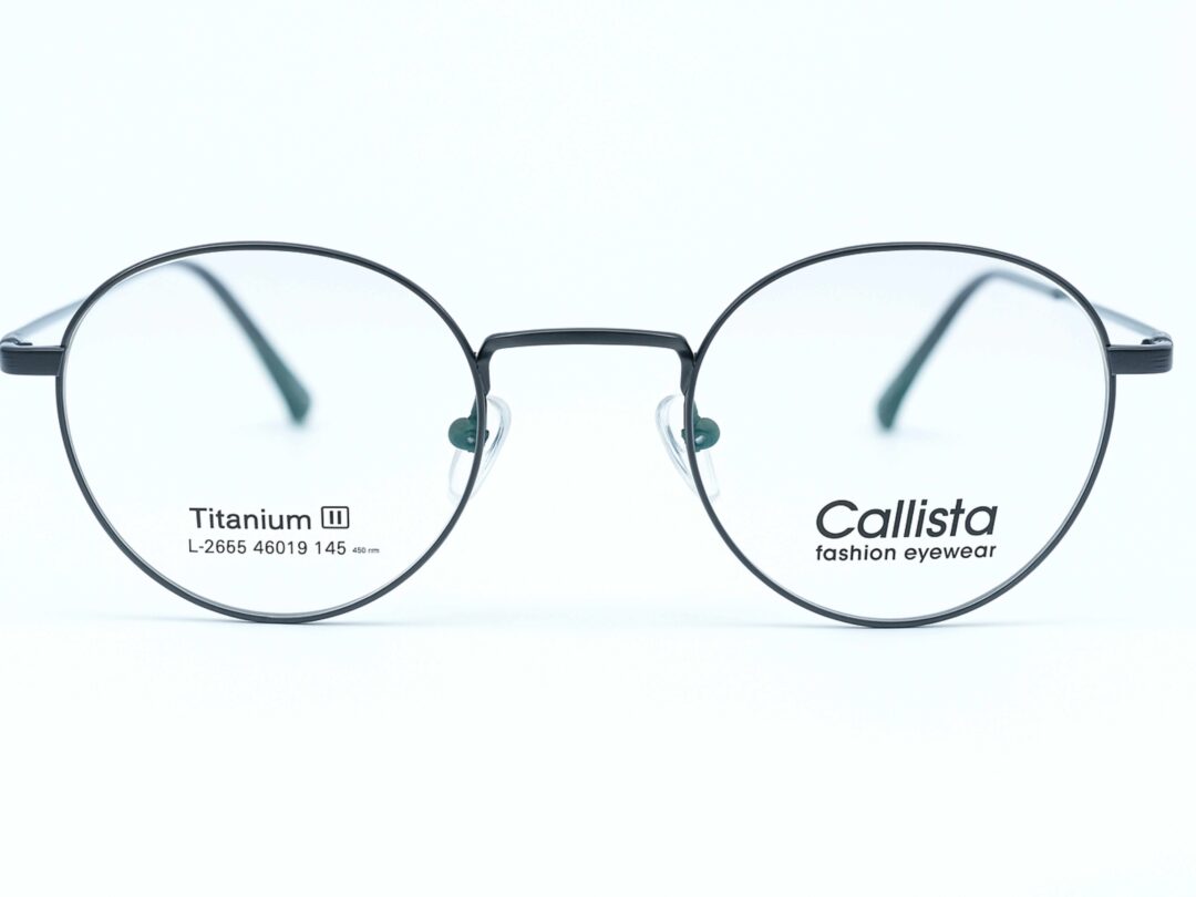 Frame Kacamata Callista L B606 Hitam berbahan metal hitam-silver dengan desain bulat klasik elegan. Ukuran 44–19–142 pas dan nyaman dipakai seharian.