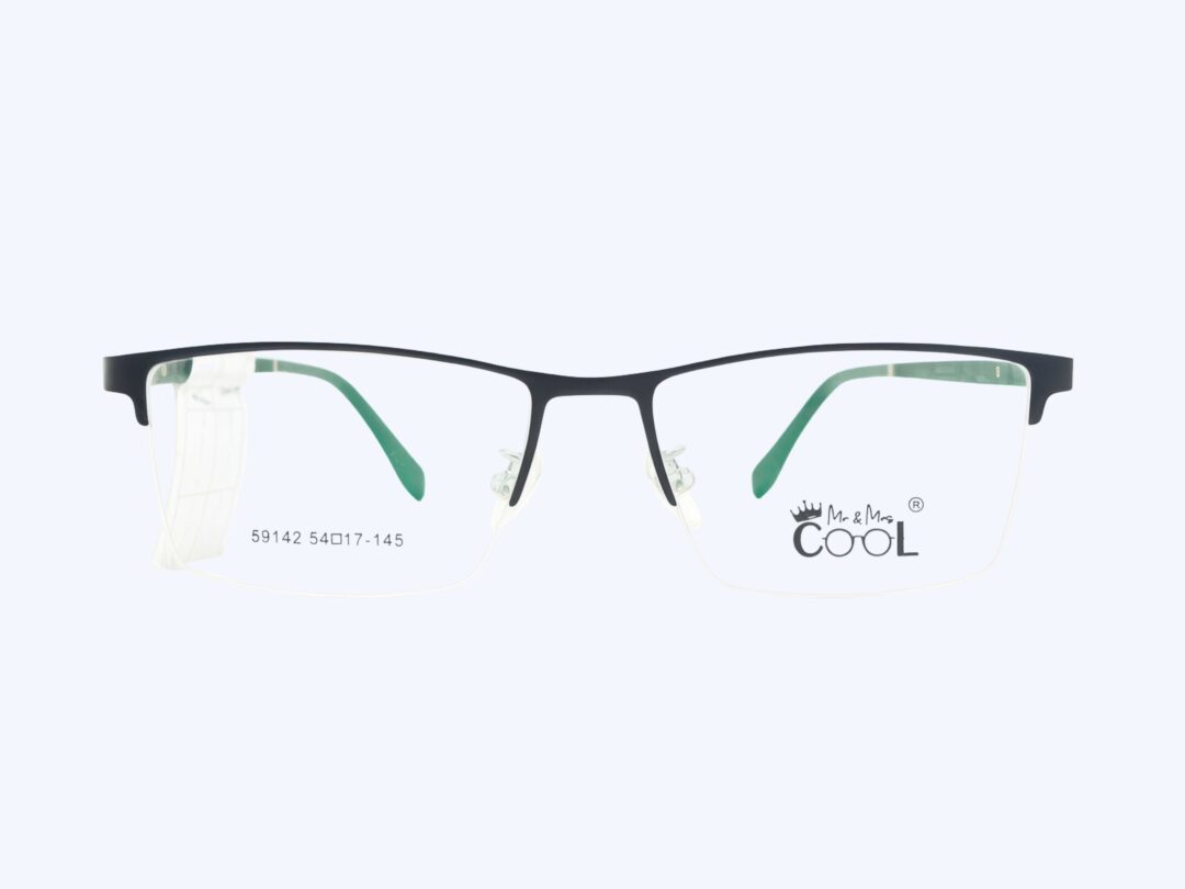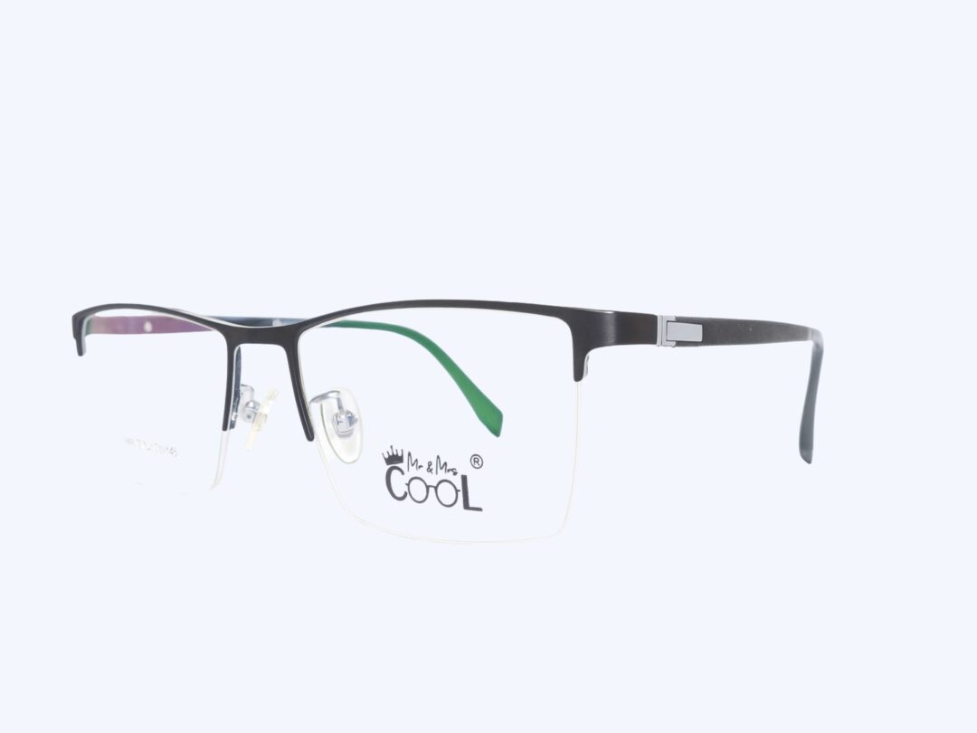Frame Kacamata Mr&Mrs Cool 59142 C3 menghadirkan desain half frame metal warna hitam dengan sentuhan aksen silver di bagian sudut atas, memberikan tampilan elegan dan berkelas.