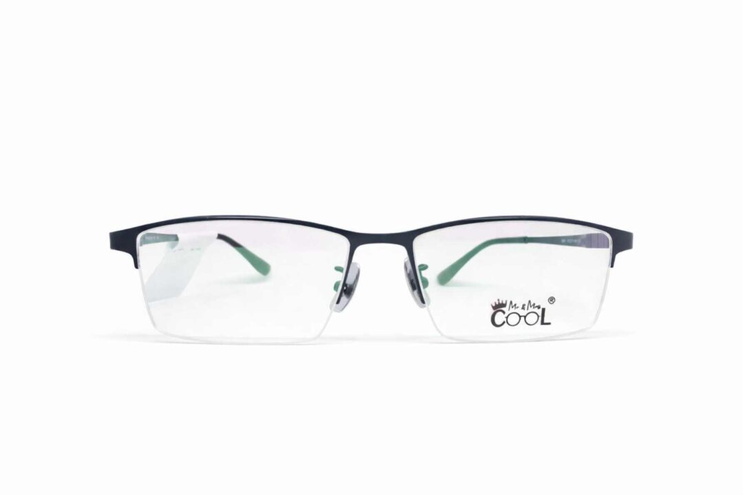 Frame Kacamata Mr&Mrs Cool 8001 C1 tampil elegan dengan desain half frame metal warna hitam.