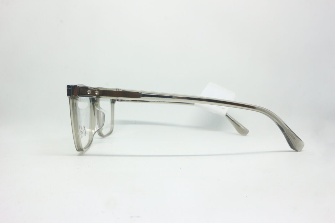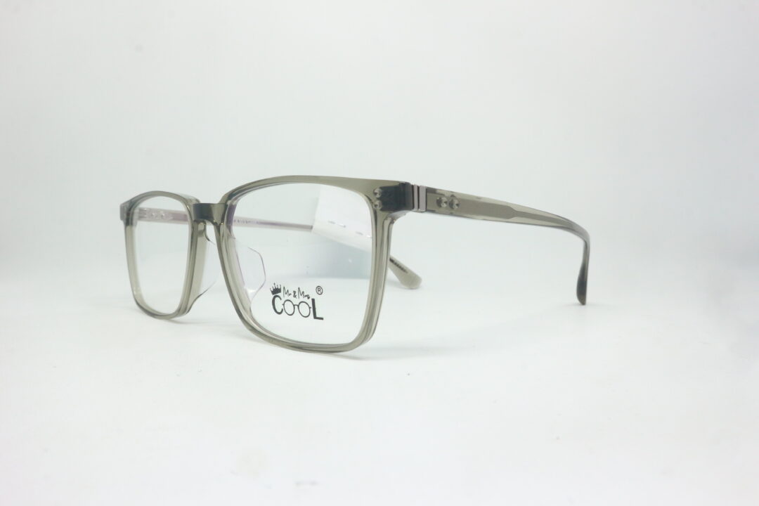 Frame Kacamata Mr&Mrs Cool X1117 C2 menghadirkan tampilan modern minimalis dengan warna grey transparan yang elegan dan kekinian.
