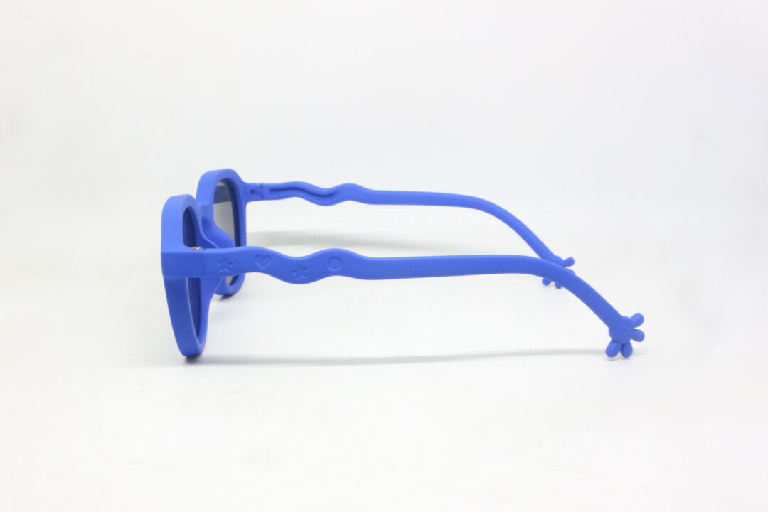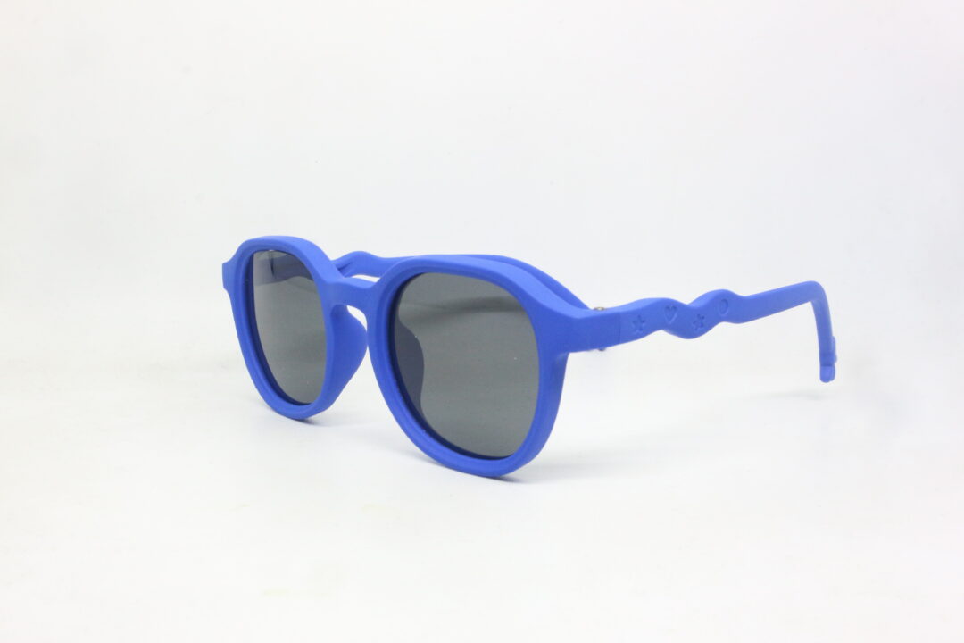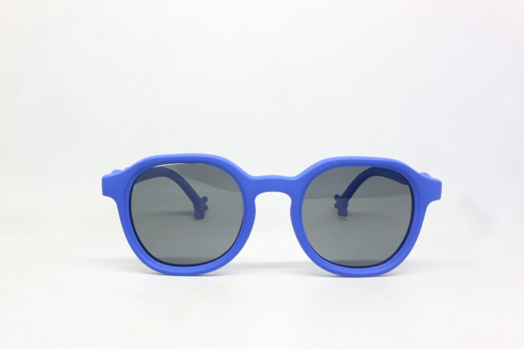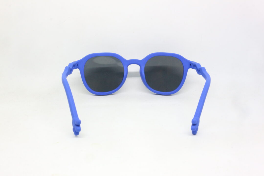 Kacamata Lentur Sunglasses Anak Anti UV Warna Biru Tua 6-118 C8 hadir dengan desain bulat modern dan warna biru tua matte yang terlihat keren namun tetap lucu dipakai anak.
